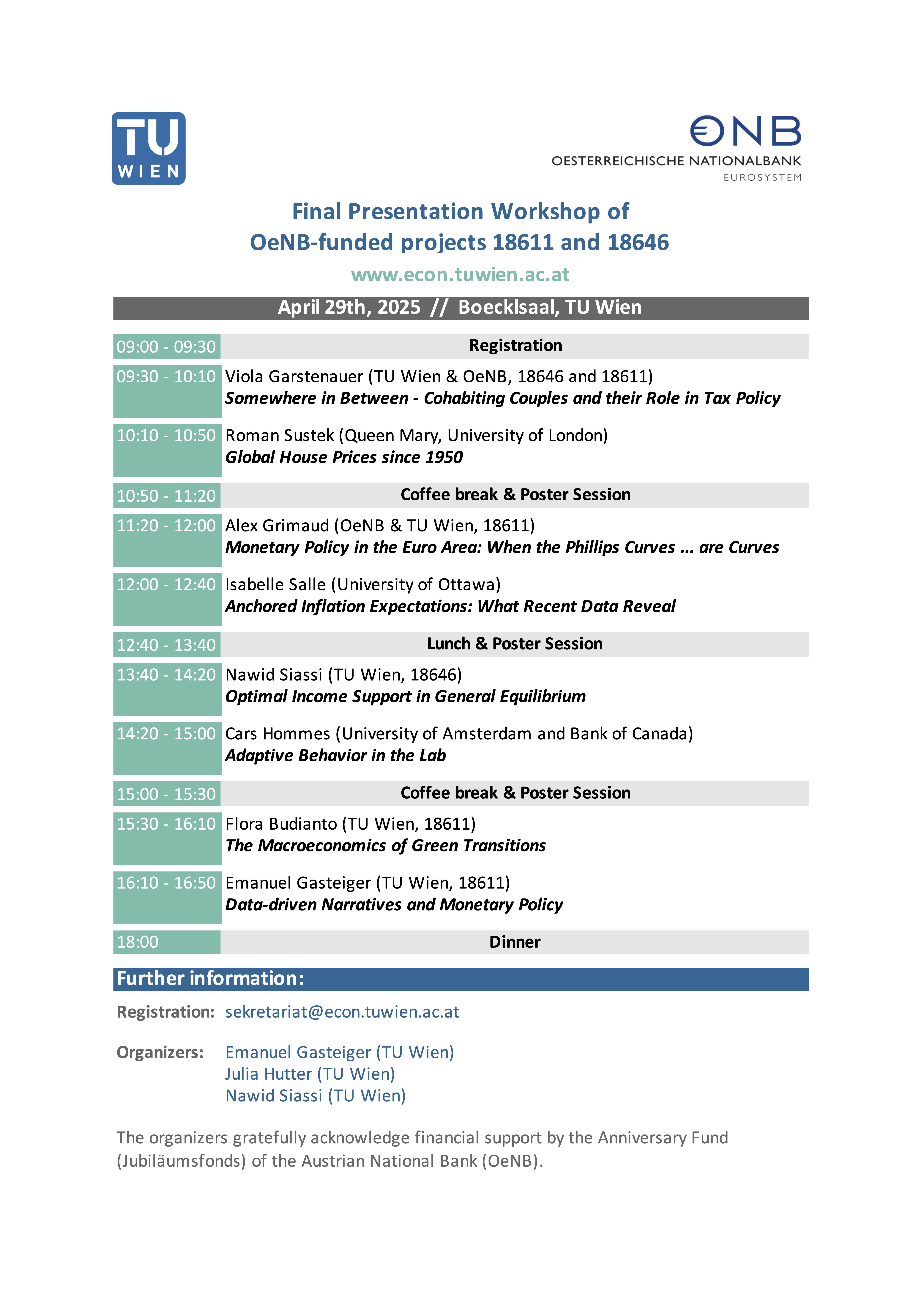 The program for the final presentation workshop of our OeNB Anniversary Fund projects on April 29th, 2025 at TU Wien is now online. |